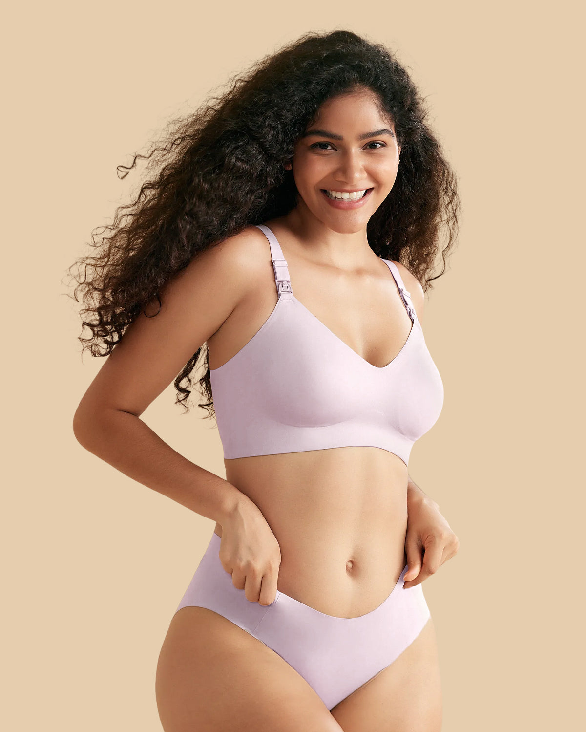 - Padded Wireless Nursing Bralette: Designed with semi-fixed breathable pads, this nursing bralette provides soft, adjustable support. The wireless band ensures a gentle, rib-stress-free fit for all-day comfort.