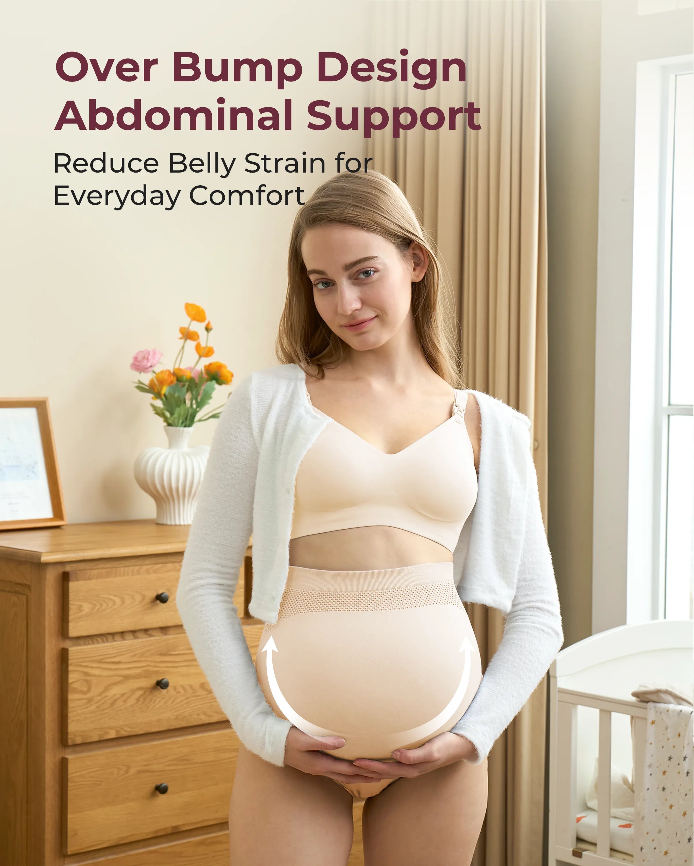 - Comprehensive Abdominal Support: Our high waist maternity underwear provides 360° coverage for your belly, offering gentle support that alleviates back pain and the weight of your abdomen during pregnancy.Expandable belly panel with enough space to accommodate growing bumps.