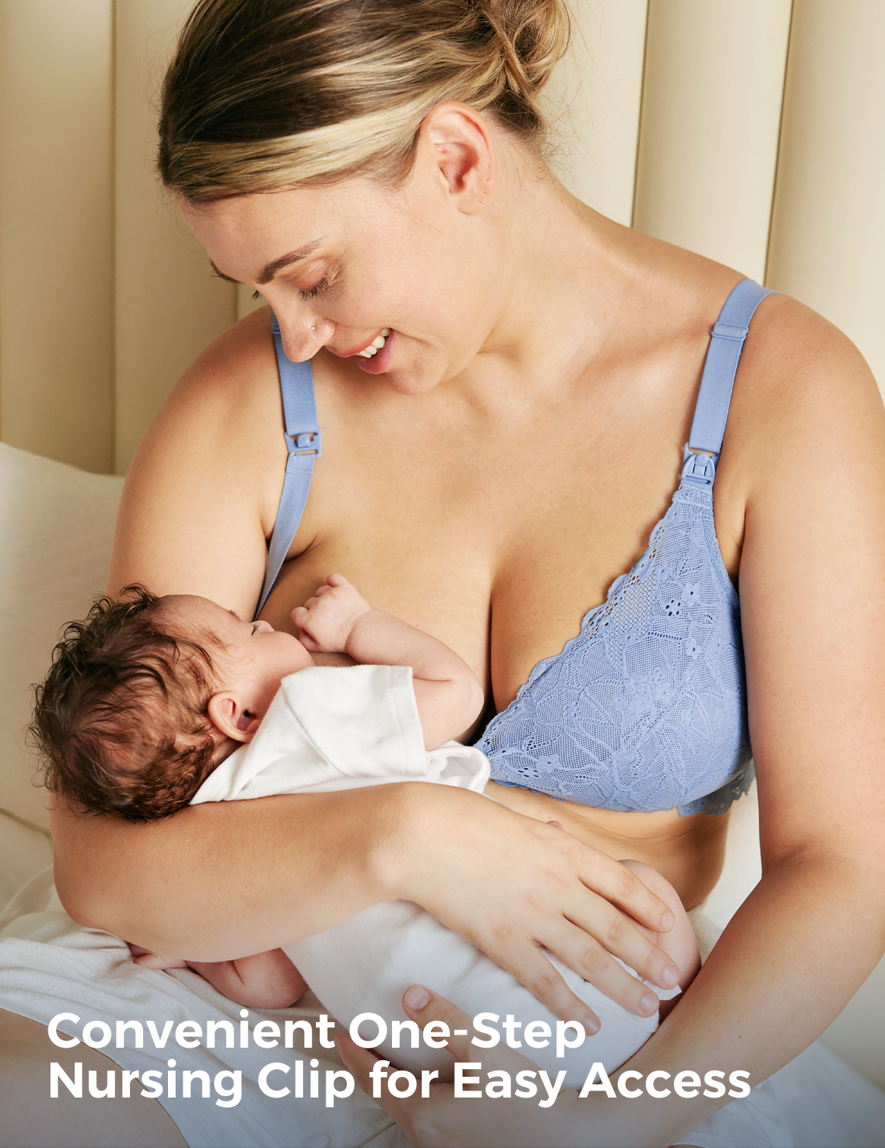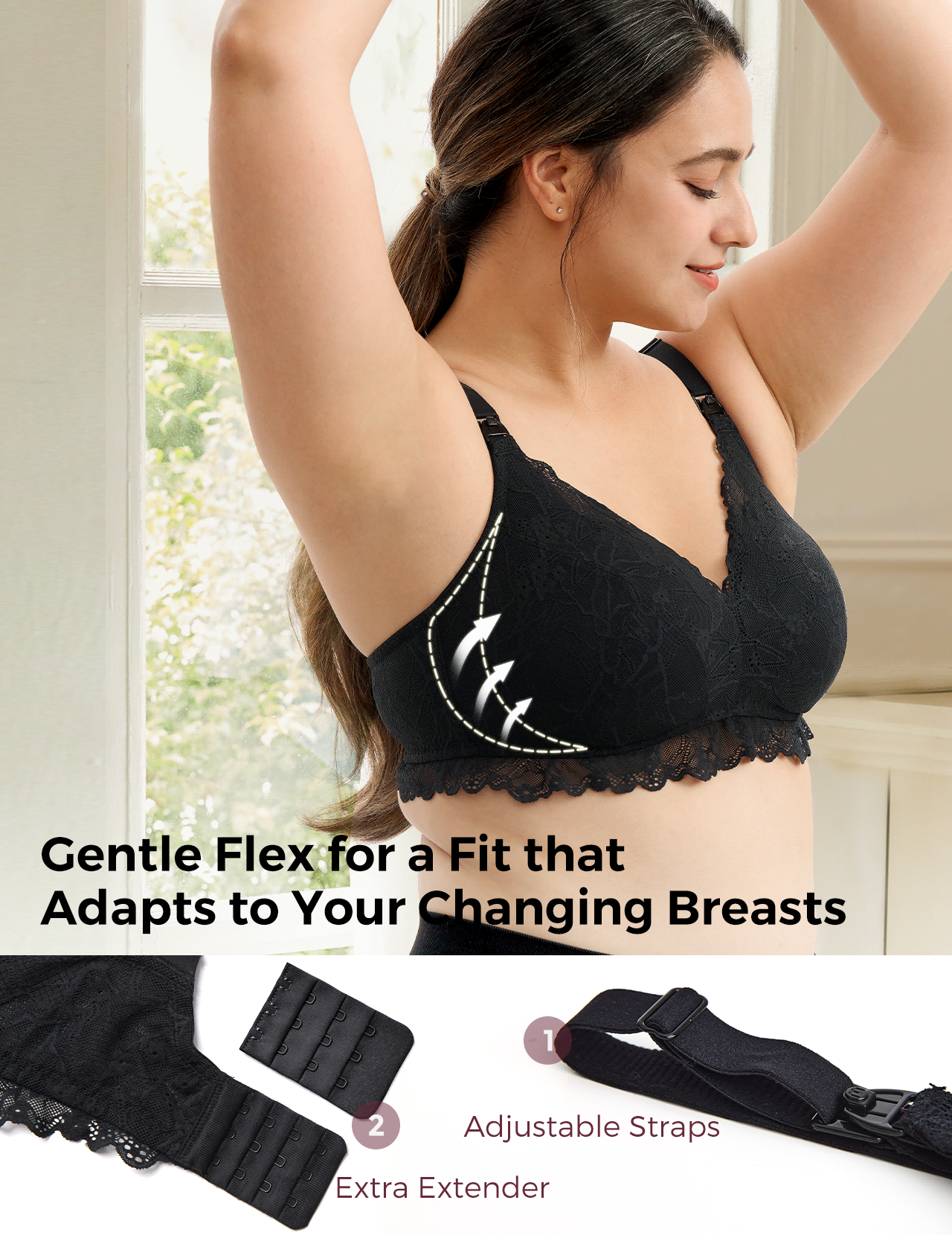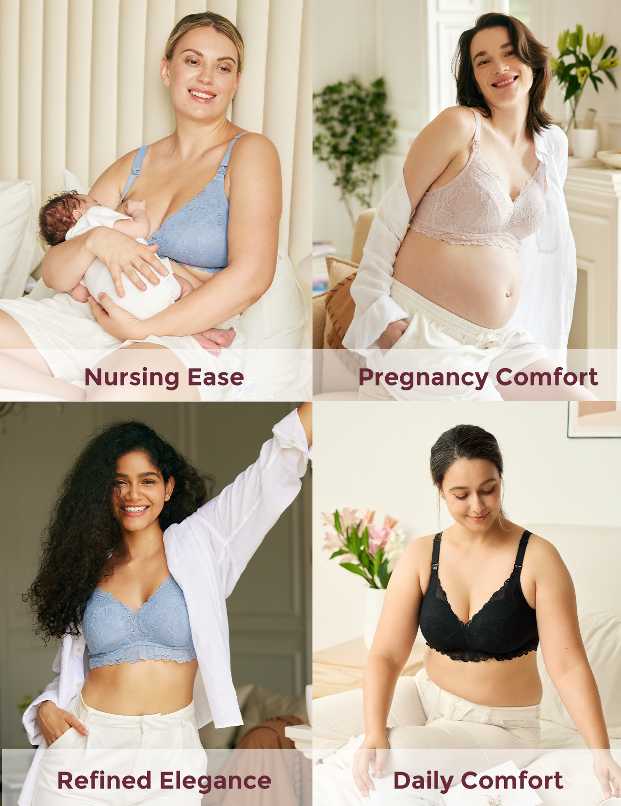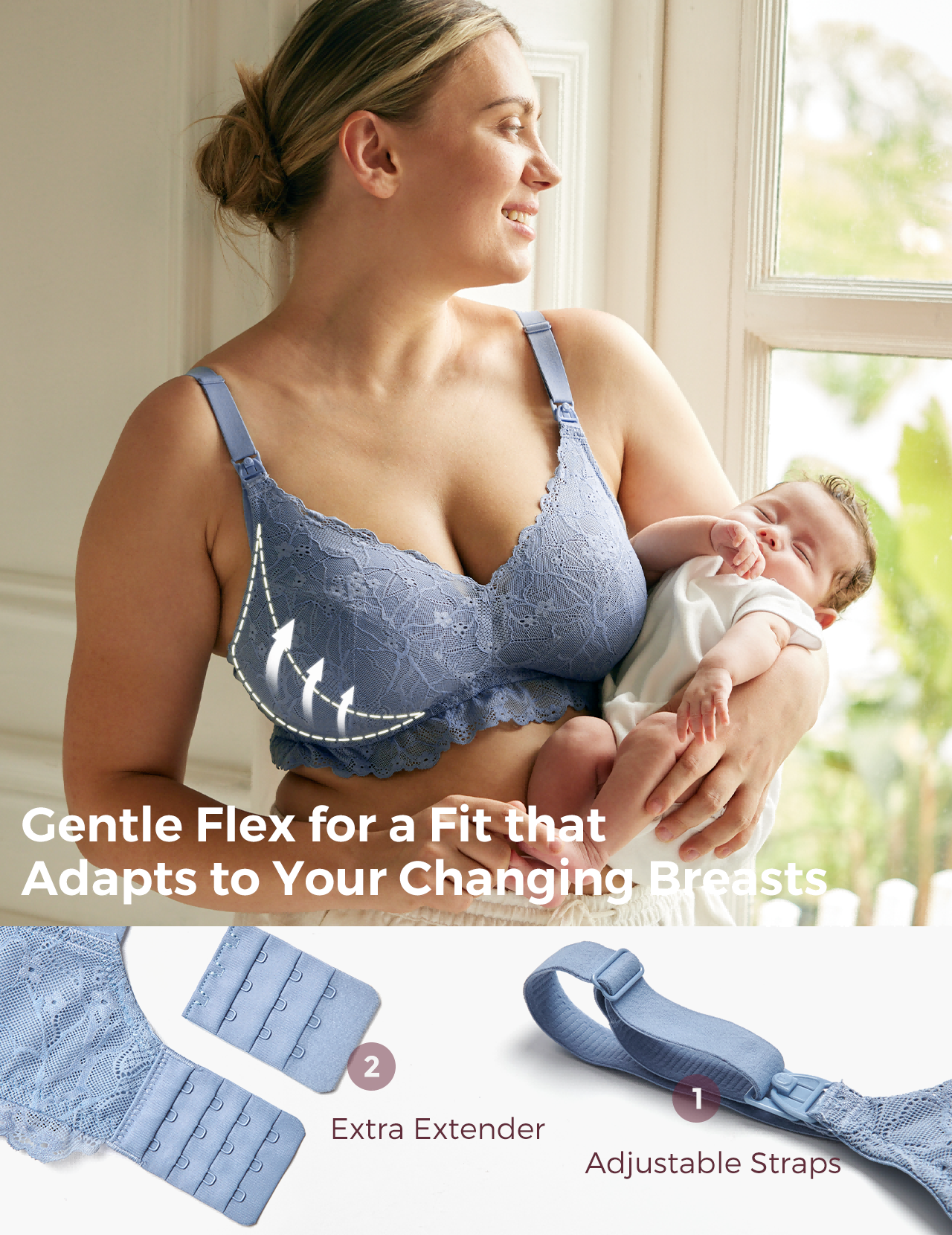 - Breathable Lace for All-Day Coolness: Made from soft, breathable lace, this nursing bra keeps you cool and comfortable throughout the day, making it ideal for extended wear during pregnancy and breastfeeding.