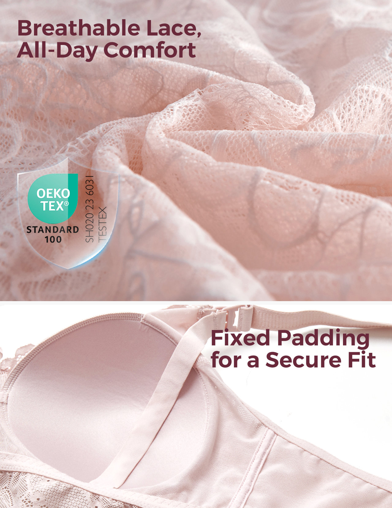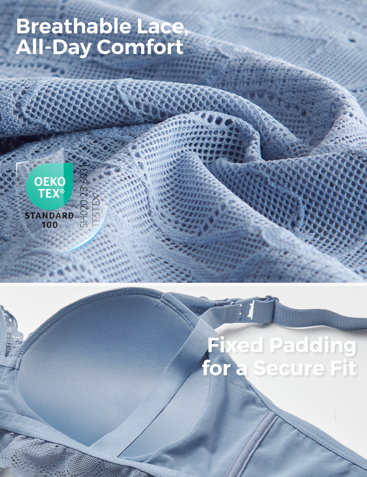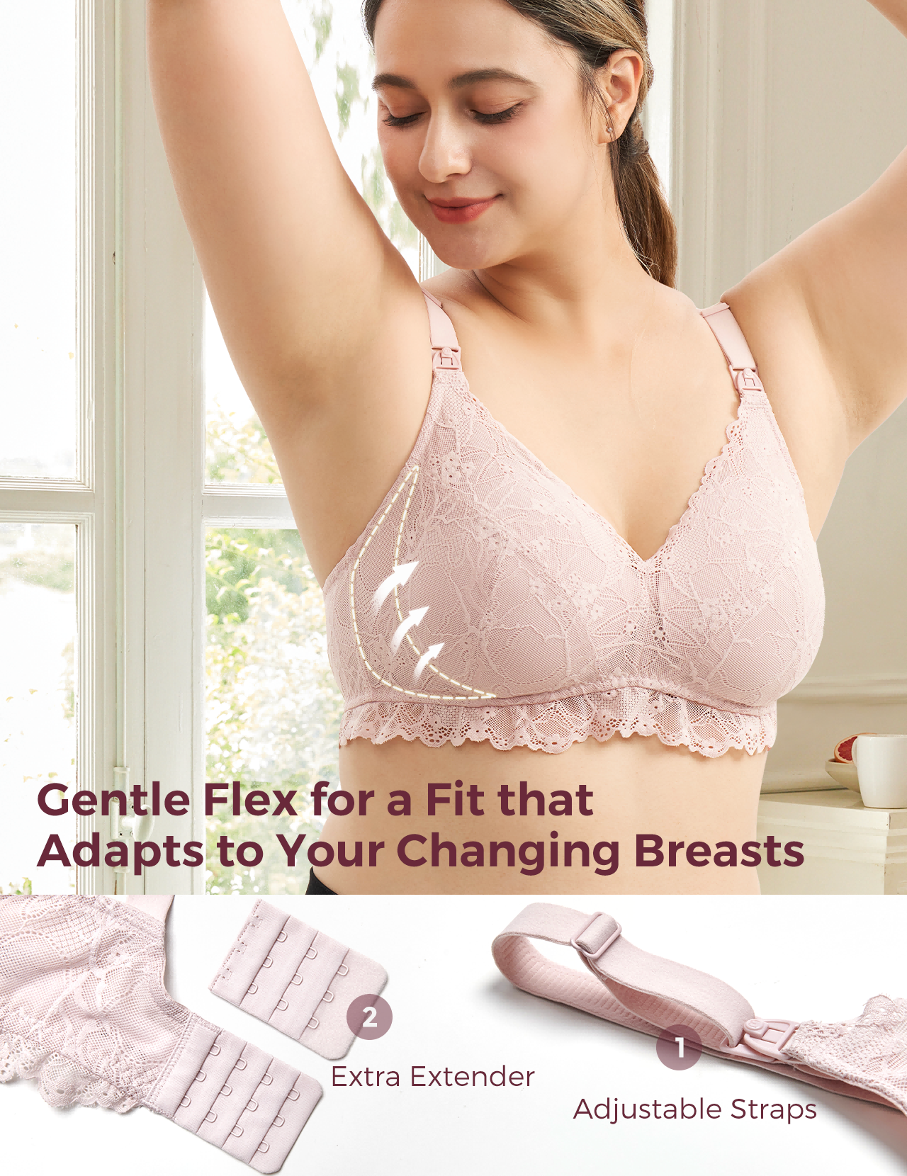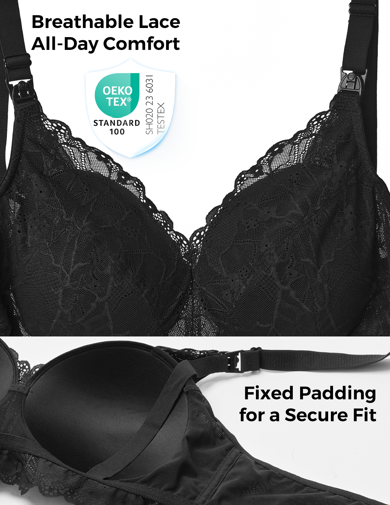- Breathable Lace for All-Day Coolness: Made from soft, breathable lace, this nursing bra keeps you cool and comfortable throughout the day, making it ideal for extended wear during pregnancy and breastfeeding.