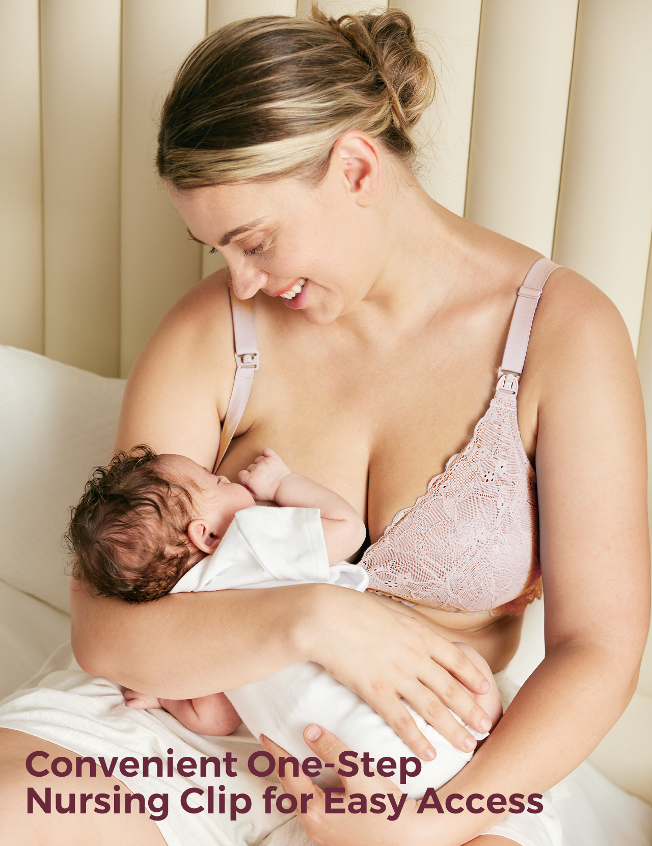 - Convenient One-Step Nursing Access: The one-step nursing clip allows for quick and easy feeding access, helping you breastfeed effortlessly, anytime and anywhere—ideal for busy, on-the-go moms who rely on functional nursing bras.