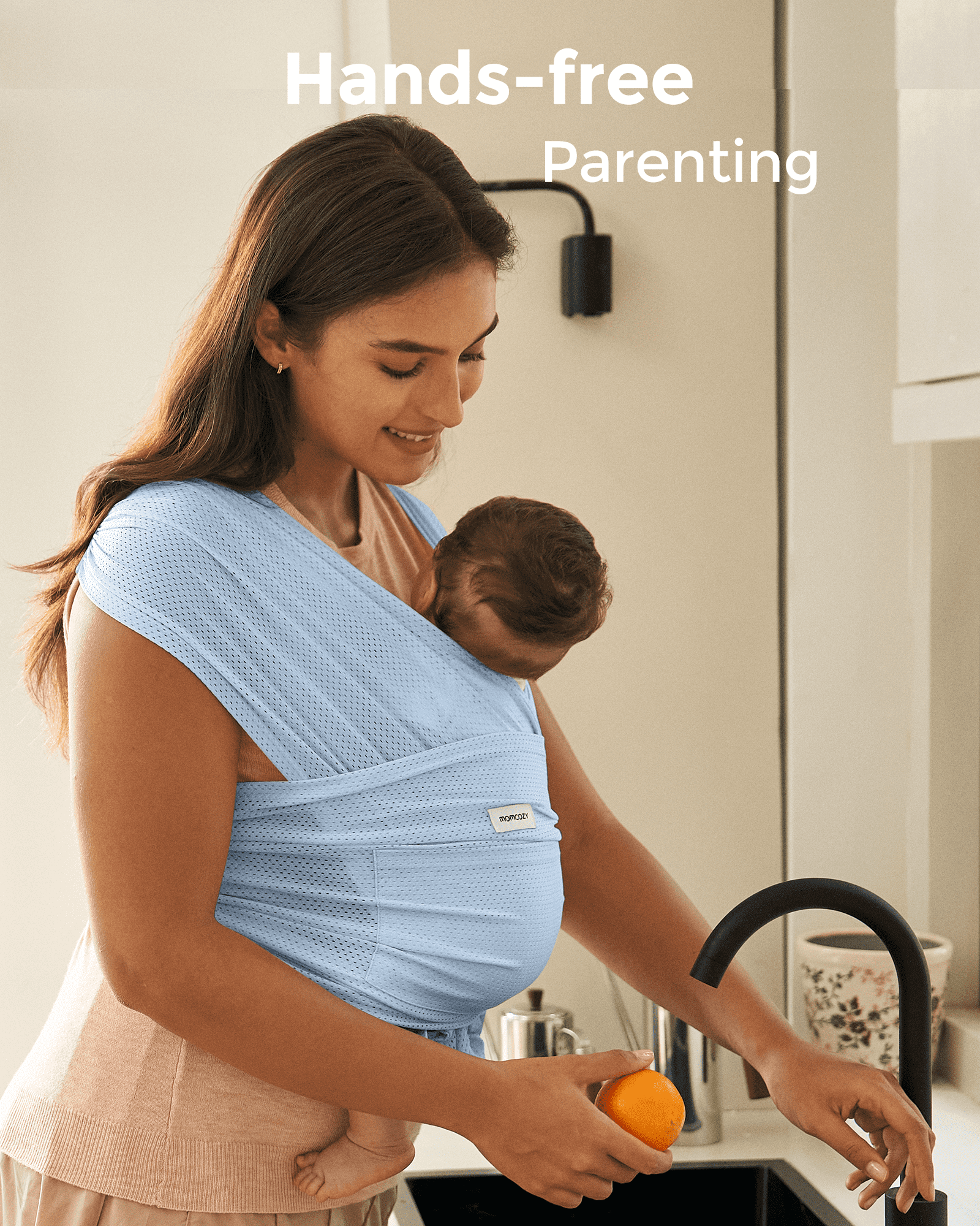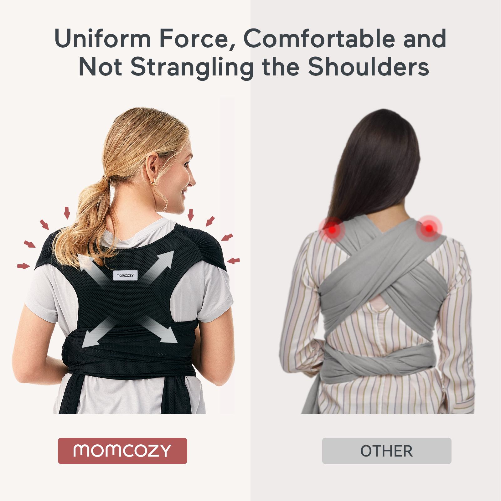 - 【Perfect for Summer】Made with soft, stretchy, breathable and moisture-wicking fabric, Momcozy baby carrier warp offers a sturdy and secure hold. Your baby will feel like they're getting a comfy hug while staying cool and comfortable.Provide ultimate care for your little one.