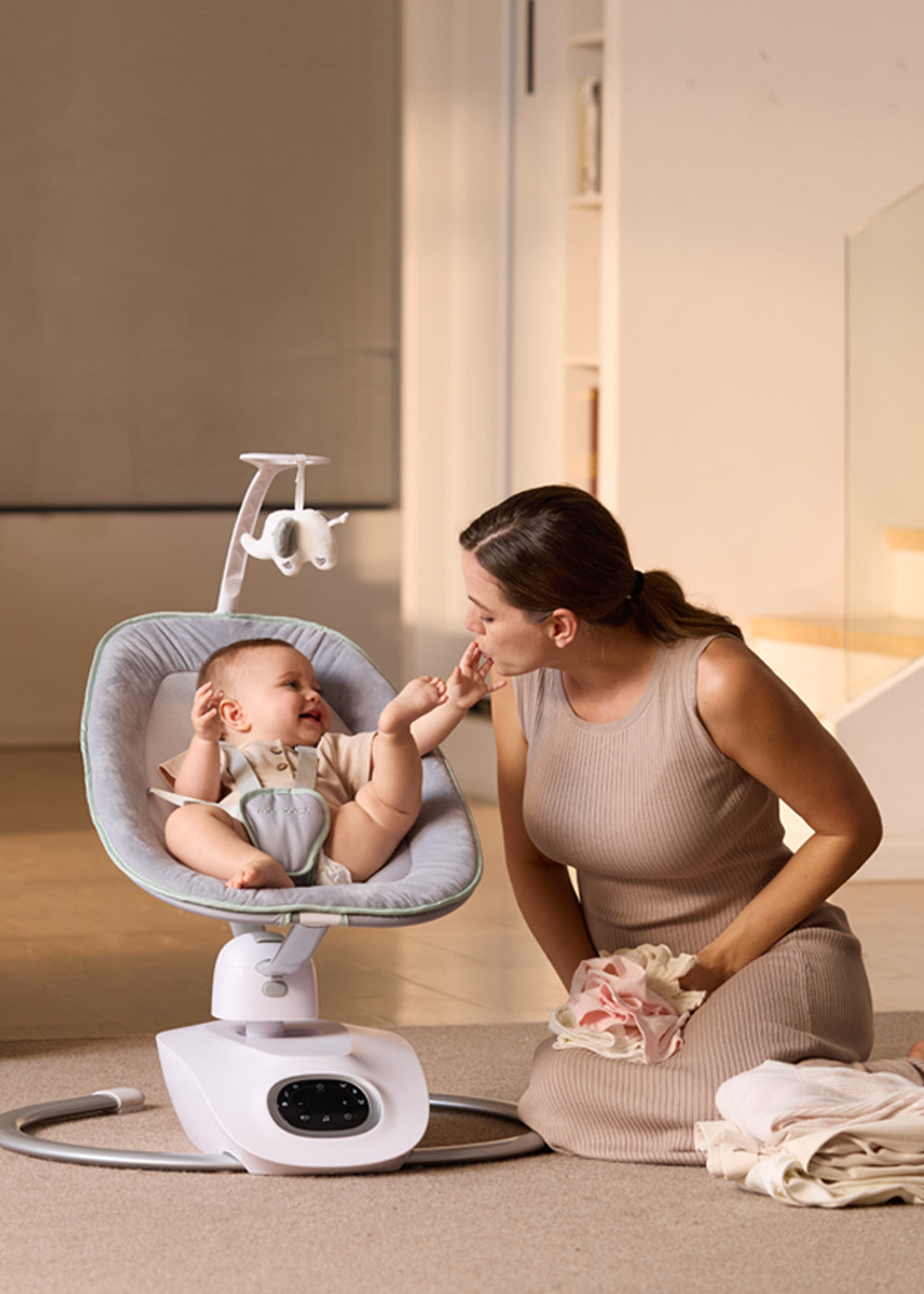 Get yourself a break or feel free to do anything you like, because our baby swing will hold and swing your baby like you do with the patented 3D Swing Tech and rich swing settings. In addition, 8 soothing sounds and a overhead toy help keep baby calm and entertained.