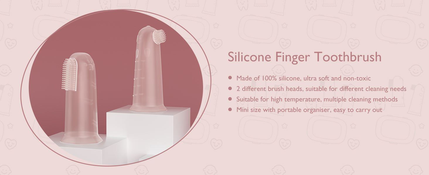 - Gum Massage - There are raised pattern on the back of our baby finger toothbrush, which is designed for massaging baby's gum to release the teething pain. Use after freezing for better results