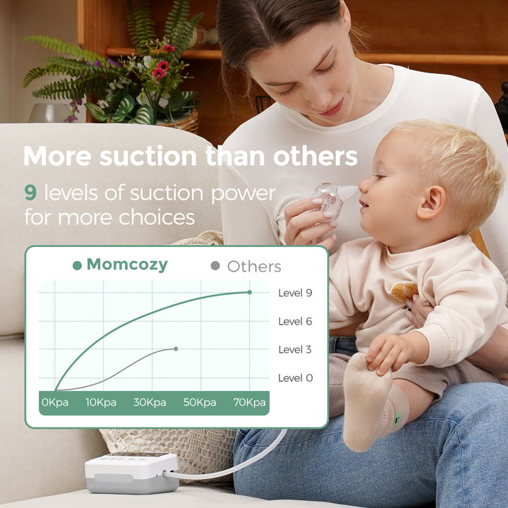 - Great Suction - 9 Levels of suction power up to 70kPa, effectively clears mucus and nasal congestion