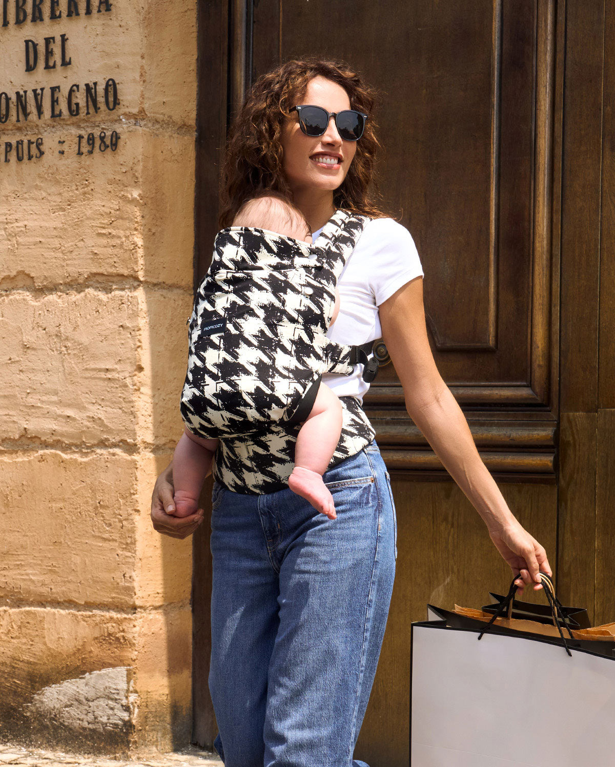 To determine if your baby carrier is ergonomic, check that it supports your baby in a natural, seated position with their knees slightly higher than their buttocks — often referred to as the "M-position" or "frog-leg position", which is important for healthy hip development. Additionally, the carrier should distribute your child’s weight evenly across your body to prevent discomfort or strain, and offer adjustable features to ensure a snug, personalized fit for both you and your baby. High-quality, breathable materials and padded straps are also indicative of an ergonomic design.