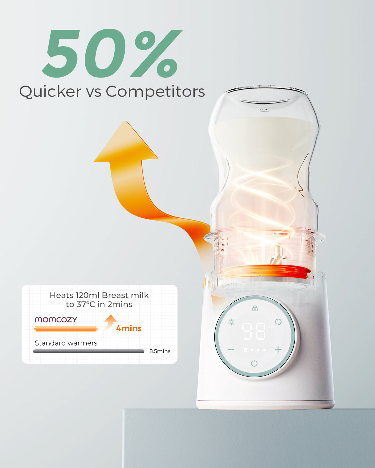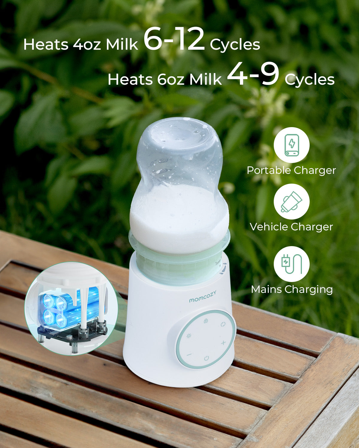 For example, the Momcozy portable baby bottle warmer can heat milk in just 2 minutes and offers multiple heating cycles for different bottle sizes. With its rechargeable battery, you can warm milk almost anywhere, making travel with your baby a breeze.
