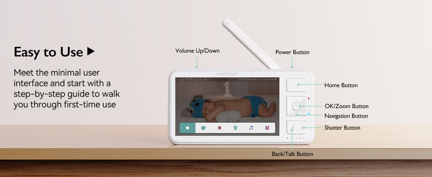 Przedstawiamy nową elektroniczną wideo nianię Momcozy BM03, zaprojektowaną dla rodziców, którzy cenią sobie wygodę, bezpieczeństwo i ideę "inteligentnej opieki" nad dzieckiem. Duży, 5,5-calowy wyświetlacz o wysokiej rozdzielczości 1080P oferuje wysoką jakość wideo, a duża bateria 5800mAh wystarcza na cały dzień i noc. Silny sygnał obsługuje imponujący zasięg do 500m i i bez problemu przenika przez dwie ściany, dzięki czemu możesz monitorować swoje dziecko z kuchni lub salonu. Ponadto nasza wideo niania wykrywa ruch dziecka, nagrywa jednominutowe filmy i zapisuje je na dołączonej karcie pamięci SD w celu późniejszego odtworzenia. Możesz także zrobić zdjęcie przez naciśnięcie przycisku. Dzięki temu nie przegapisz żadnych wyjątkowych chwil swojego dziecka.