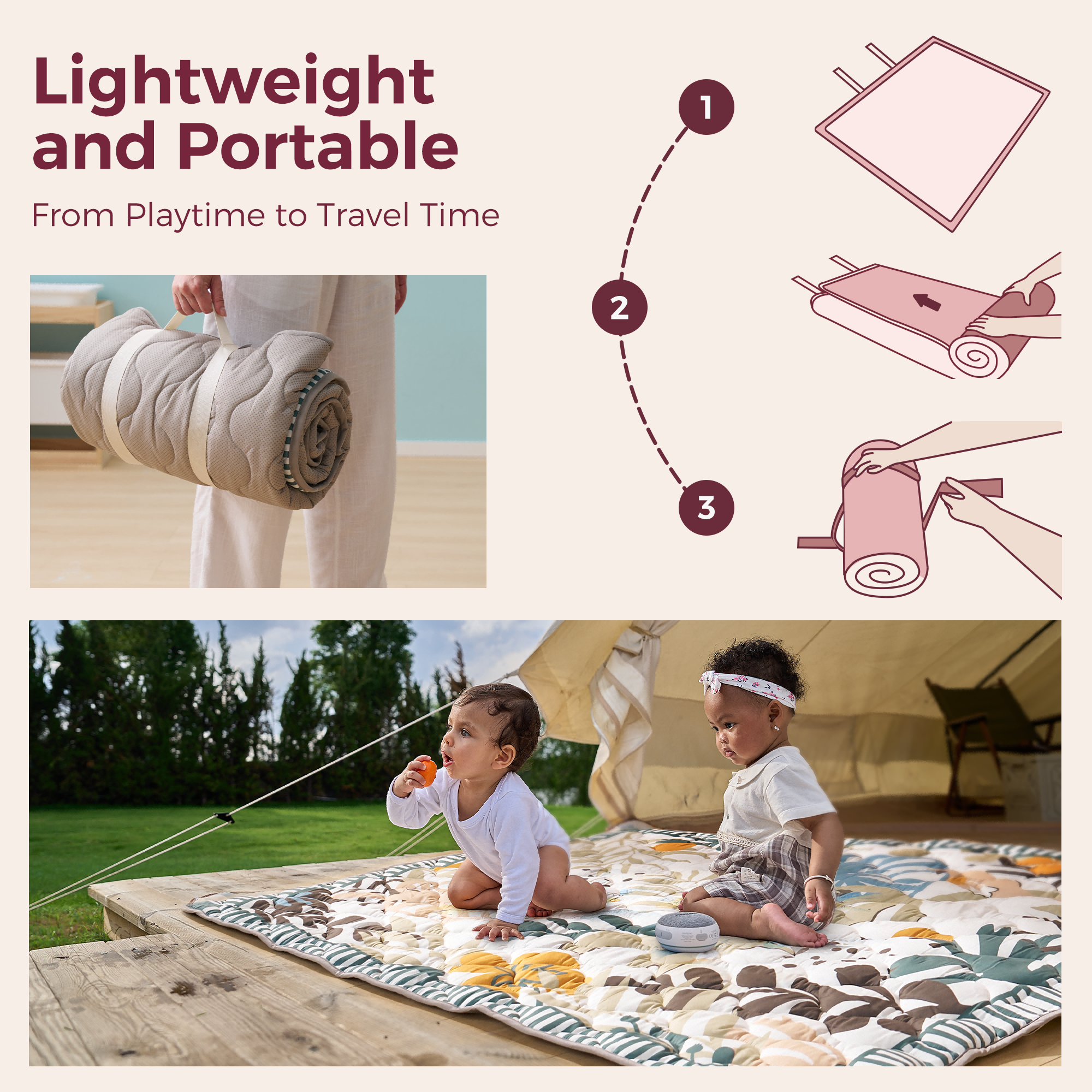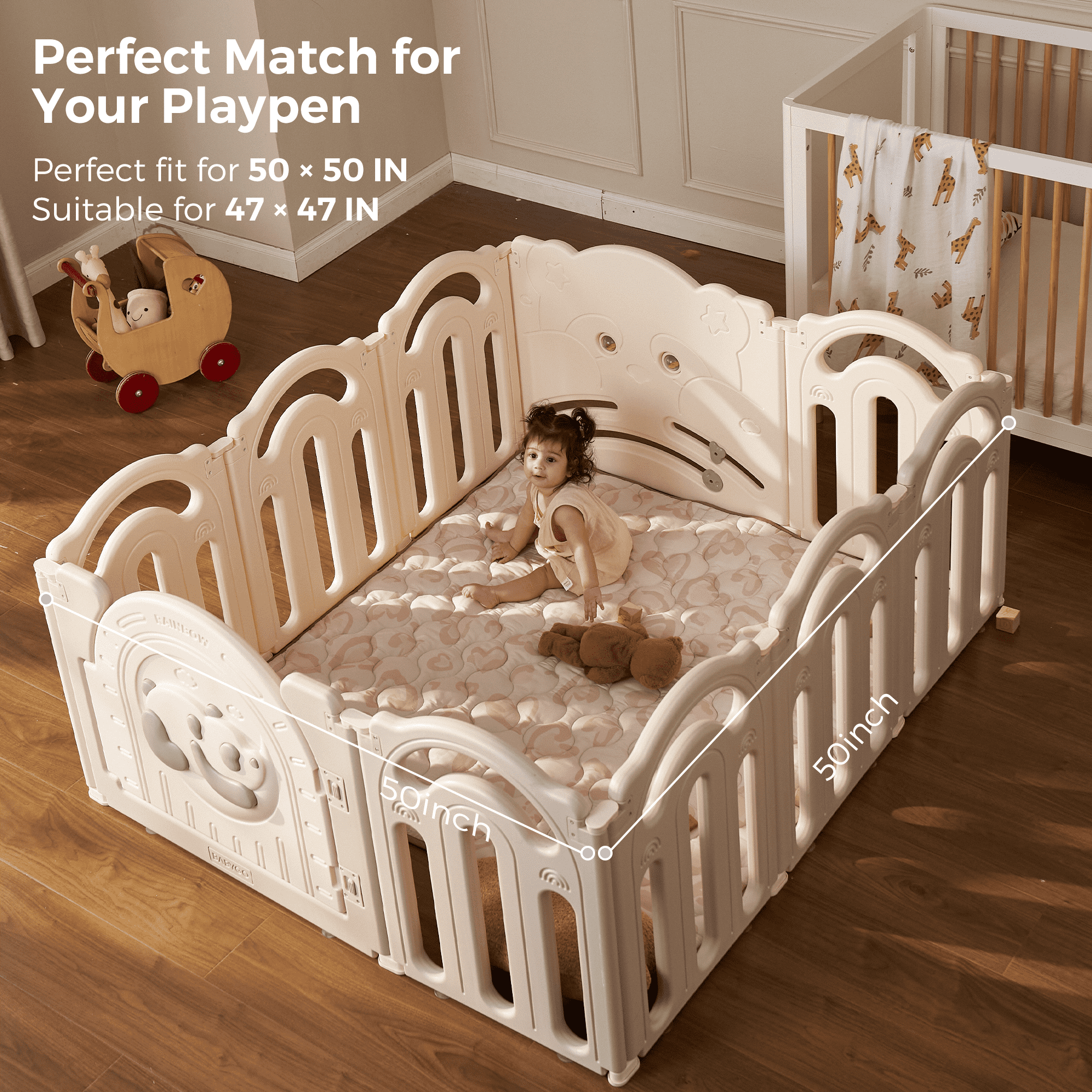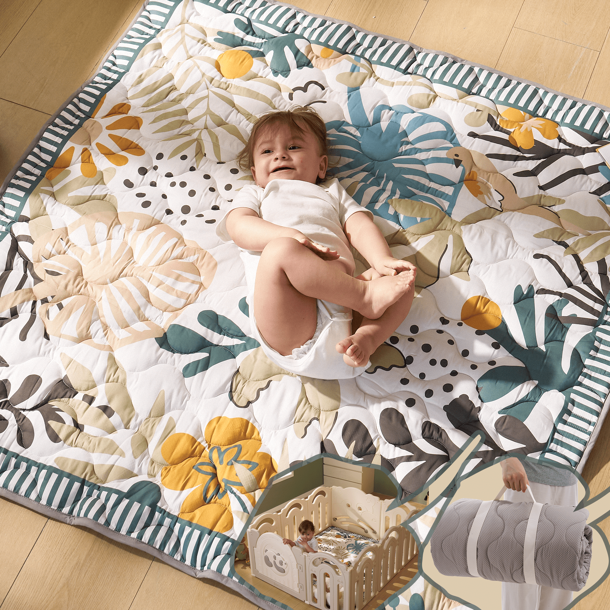 - Przestronna i wszechstronna strefa zabawy: Duży rozmiar 50"x50" tworzy bezpieczny obszar do ćwiczeń na brzuszku, raczkowania, nauki chodzenia lub zabawy rodzinnej. Łatwo przenosi się z salonów i sypialni do pokojów zabaw i na pikniki na świeżym powietrzu.