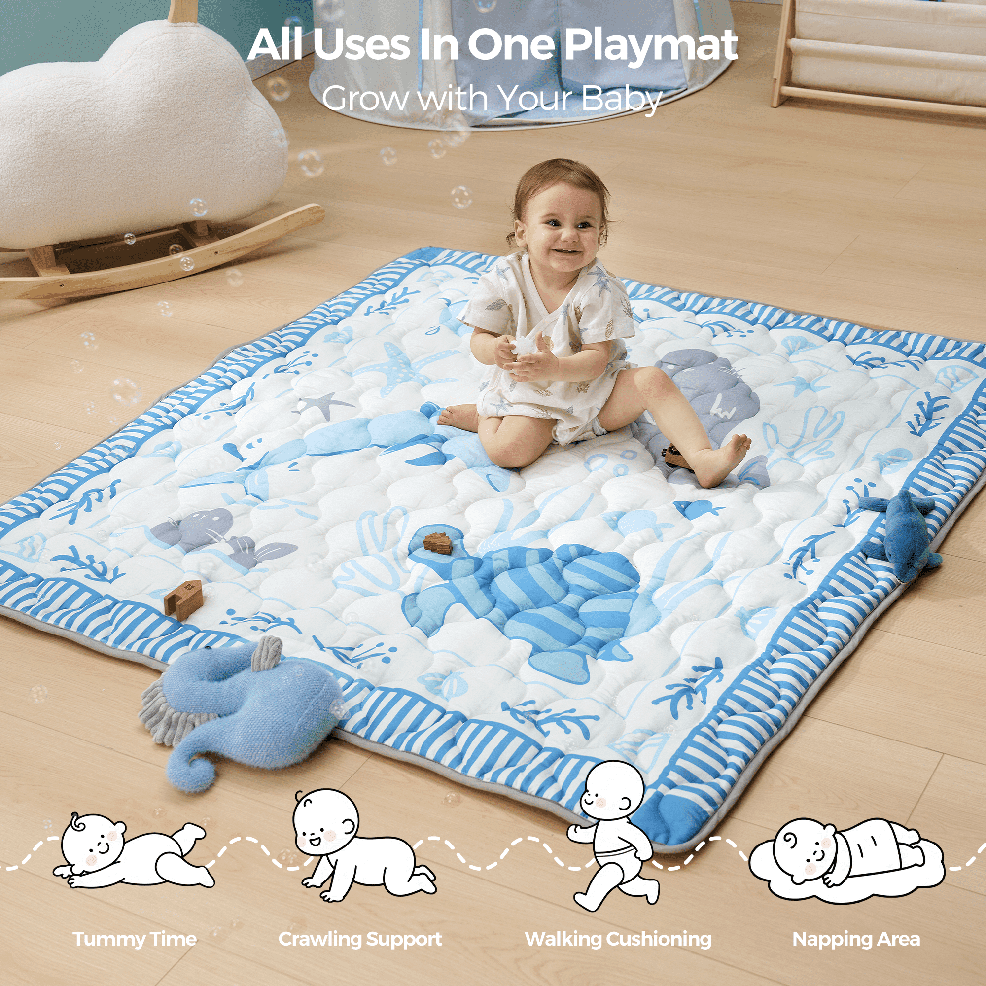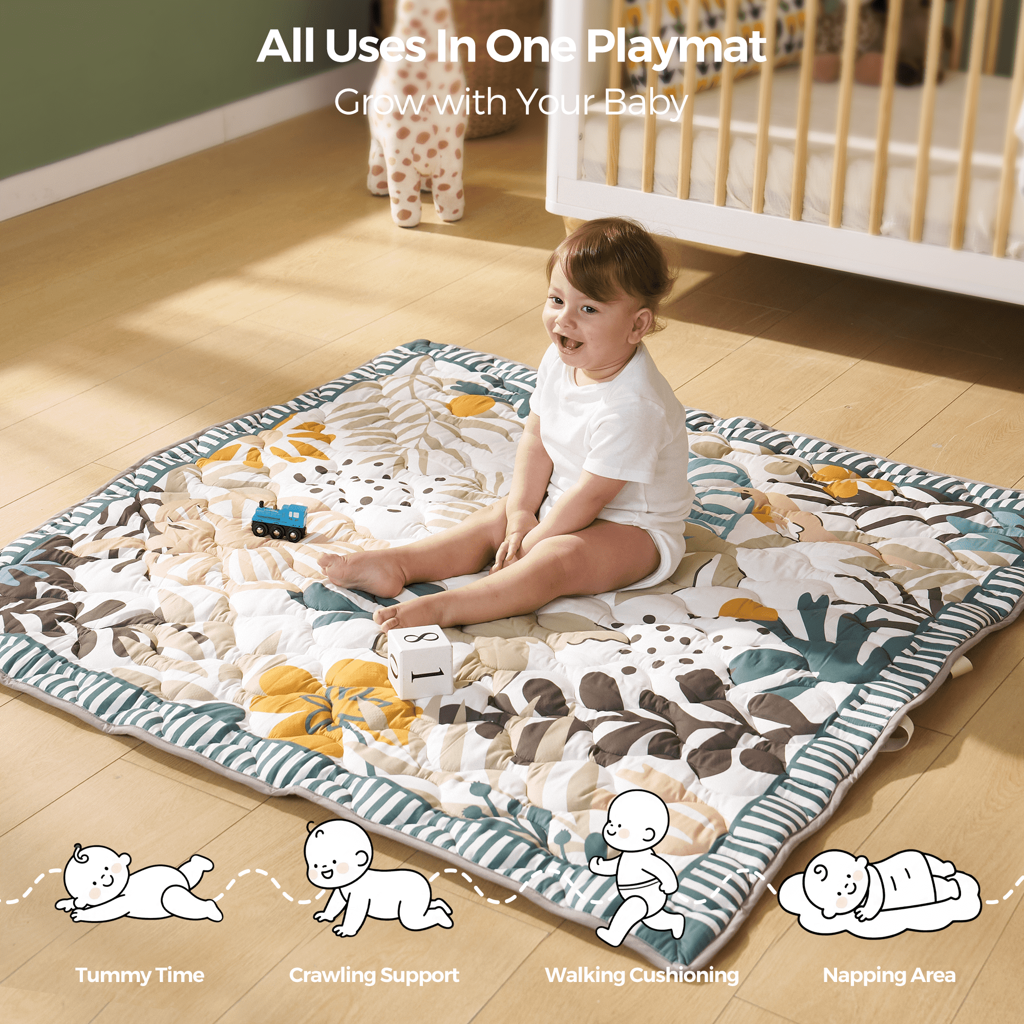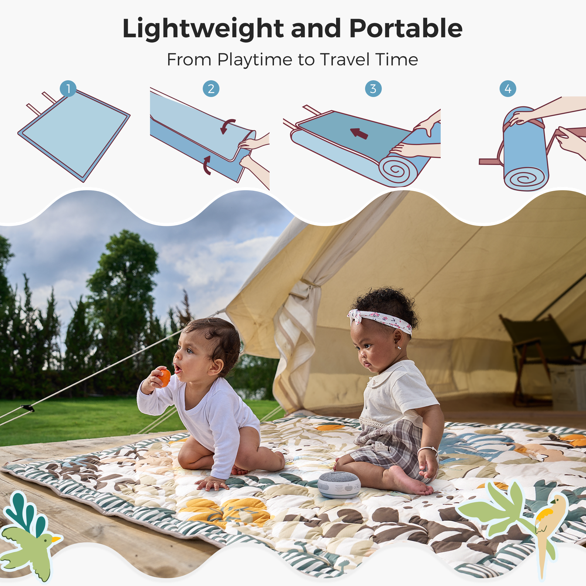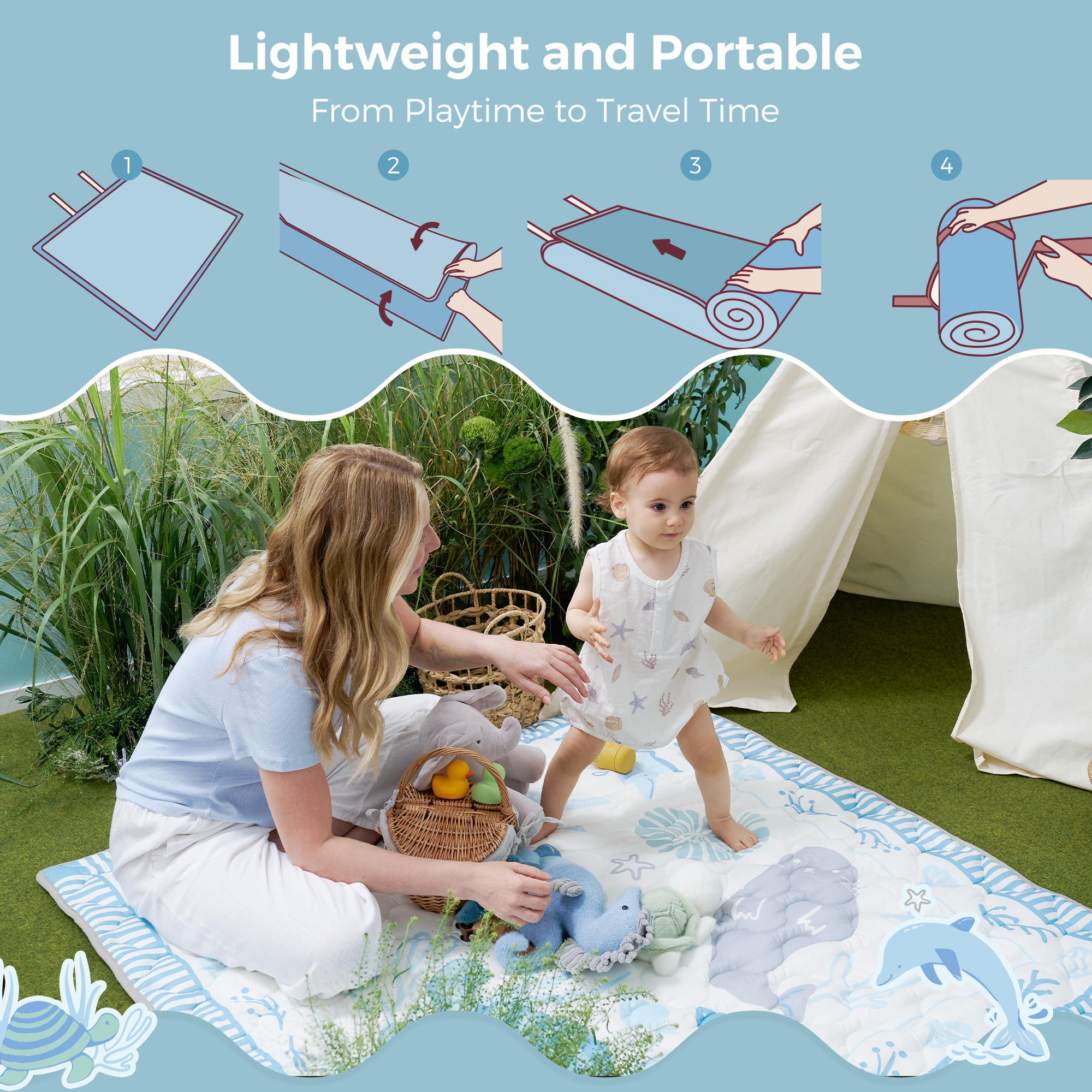 - Przestronna i wszechstronna strefa zabawy: Duży rozmiar 50"x50" tworzy bezpieczny obszar do ćwiczeń na brzuszku, raczkowania, nauki chodzenia lub zabawy rodzinnej. Łatwo przenosi się z salonów i sypialni do pokojów zabaw i na pikniki na świeżym powietrzu.