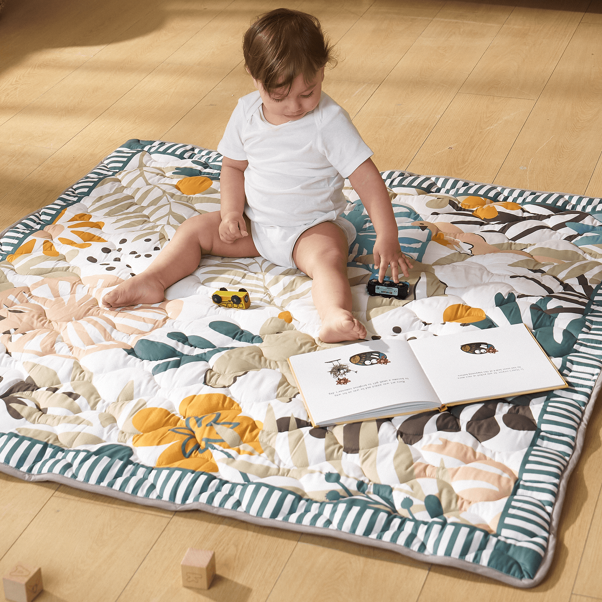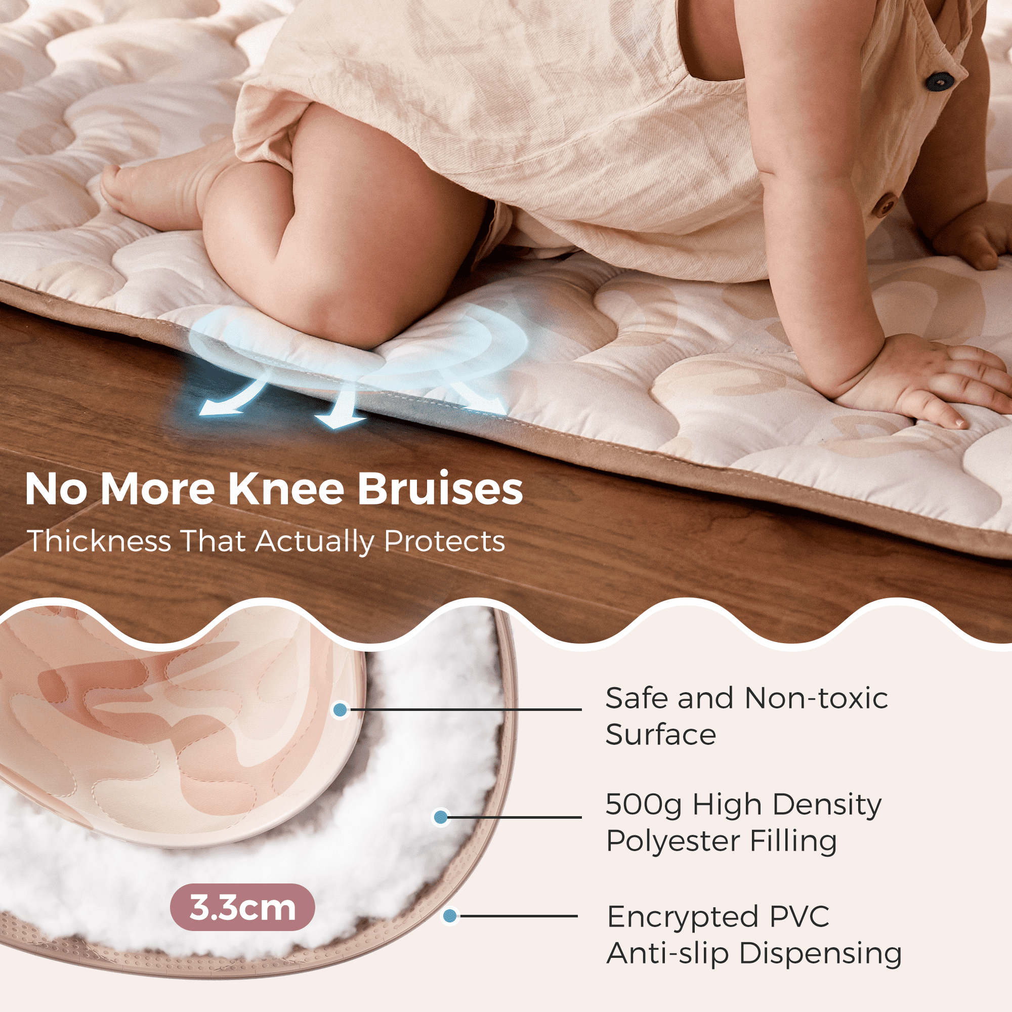 - Grube wypełnienie (500gsm): Zaprojektowane z wysokiej gęstości wypełnieniem, oferuje miękką, a jednocześnie wspierającą powierzchnię, pomagając chronić ramiona, klatkę piersiową i twarz dziecka podczas czasu na brzuszku, wspierając jednocześnie rozwój górnej części ciała.