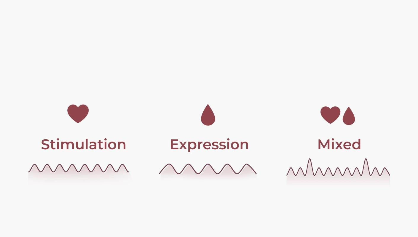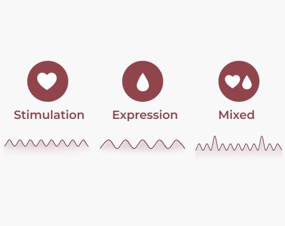 Przełączaj między trybami stymulacji, odciągania i mieszanym podczas każdego etapu odciągania pokarmu.
