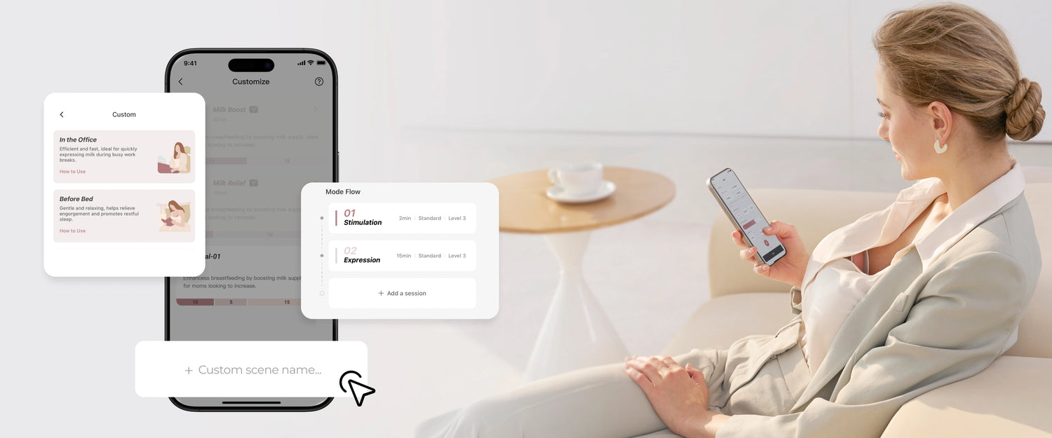 Jego etui do ładowania bezprzewodowego pozwala na nawet 15 sesji odciągania lub 5 dni użytkowania, upraszczając codzienną rutynę poprzez eliminację plączących się kabli i integrację funkcji przechowywania. Dzięki bardzo cichej pracy (<45 dB) mamy mogą odciągać mleko dyskretnie, nie przeszkadzając innym. Integracja z aplikacją Momcozy umożliwia płynną zmianę trybów, śledzenie przebiegu sesji w czasie rzeczywistym oraz powiadomienia o napełnieniu pojemnika, zapewniając całkowicie bezobsługowe, inteligentne odciąganie.