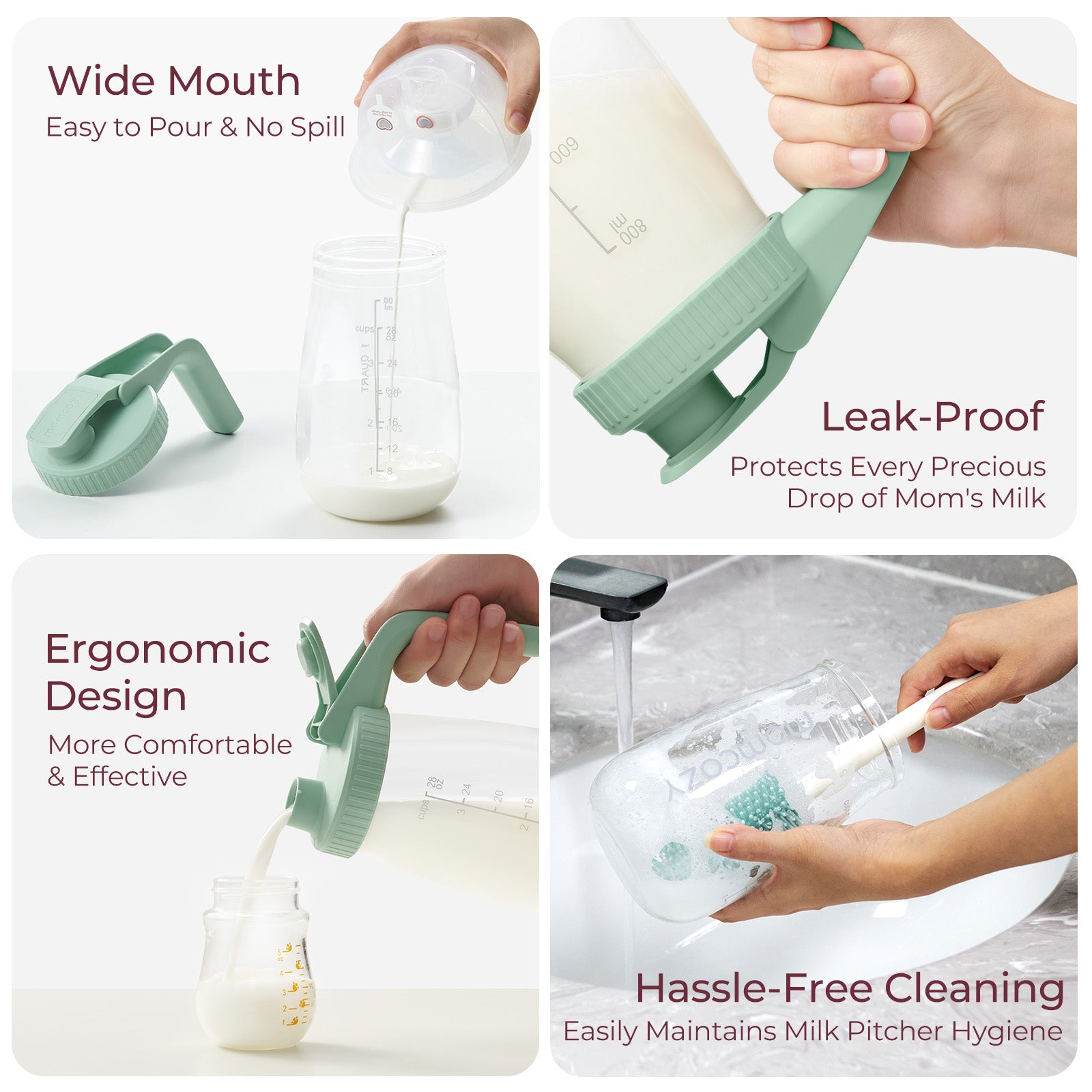The Momcozy Glass Breast Milk Pitcher is a nice solution to our problem of too many little bottles taking up too much fridge space. I love that it is made from super tough borosilicate glass and that it is BPA-free. The 48-ounce capacity is generous enough to combine several pumping sessions into one pitcher, which means fewer dishes and fewer which bottle is oldest? debates. The wide mouth makes pouring and cleaning easy, and the lid seals tightly enough to feel secure without requiring a workout to open it.