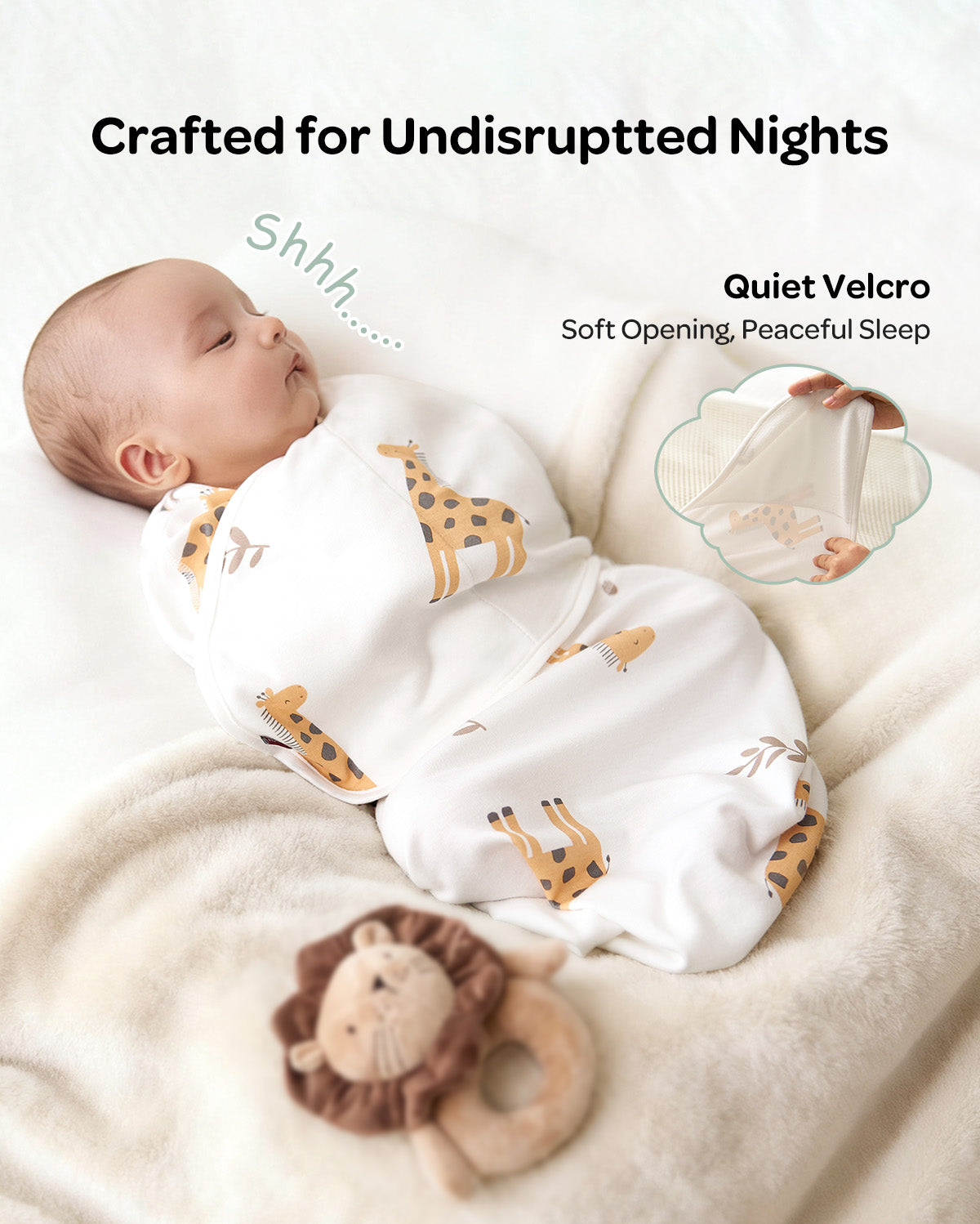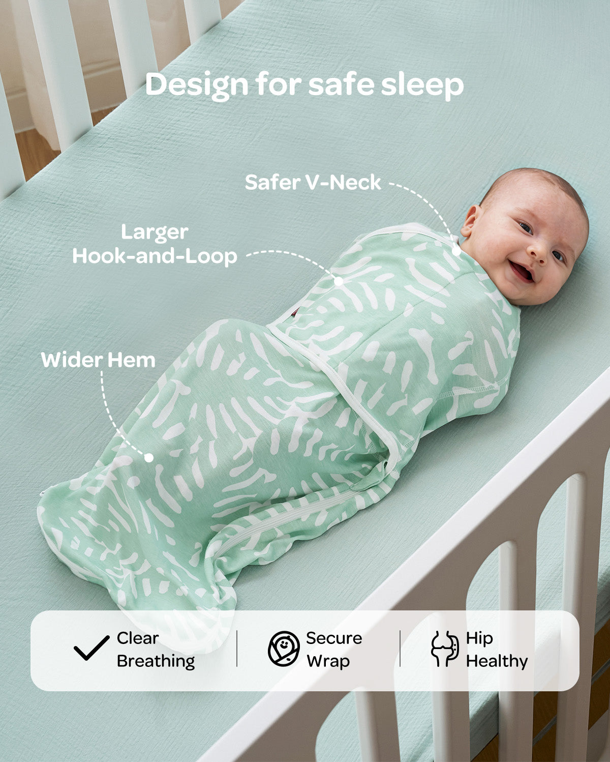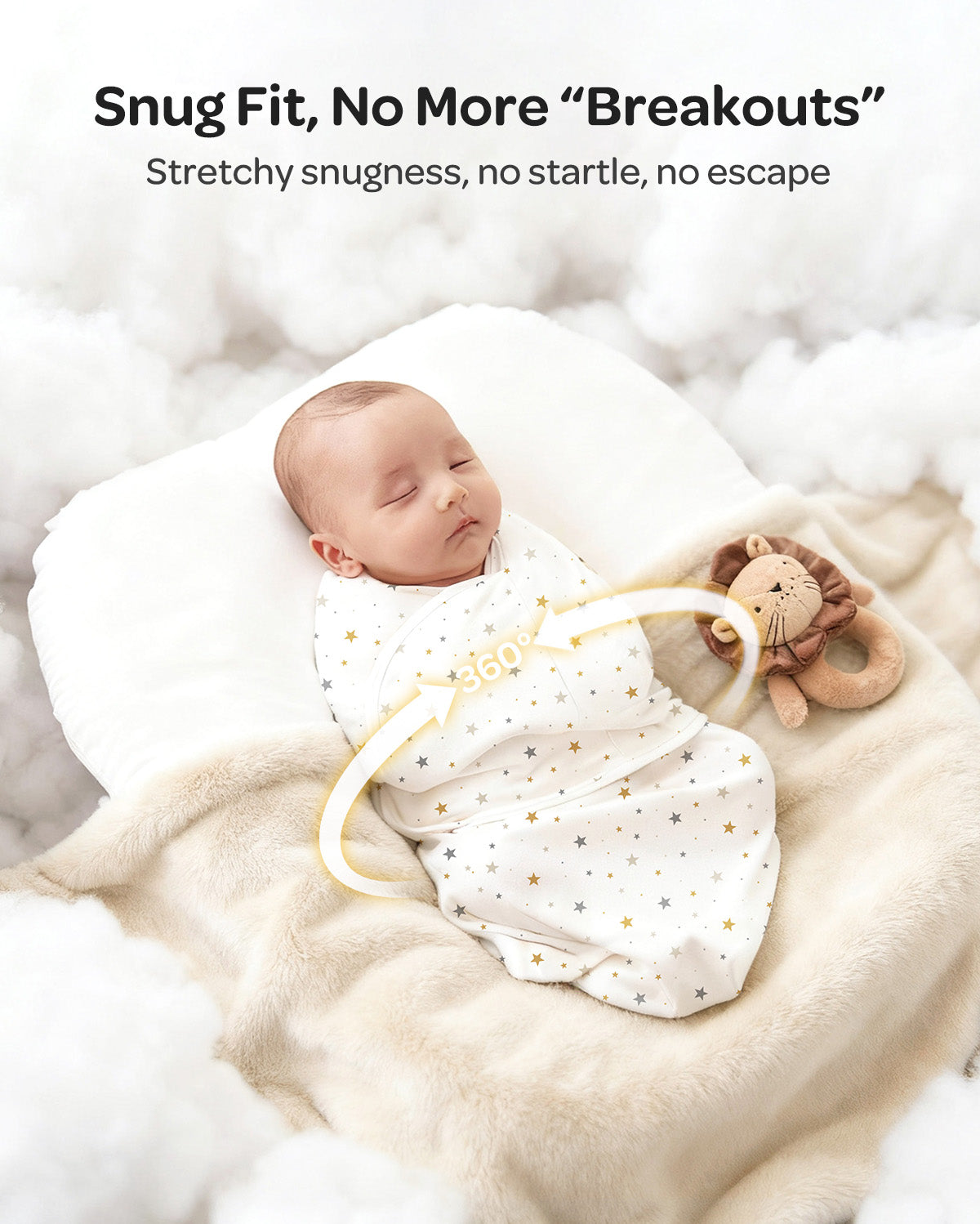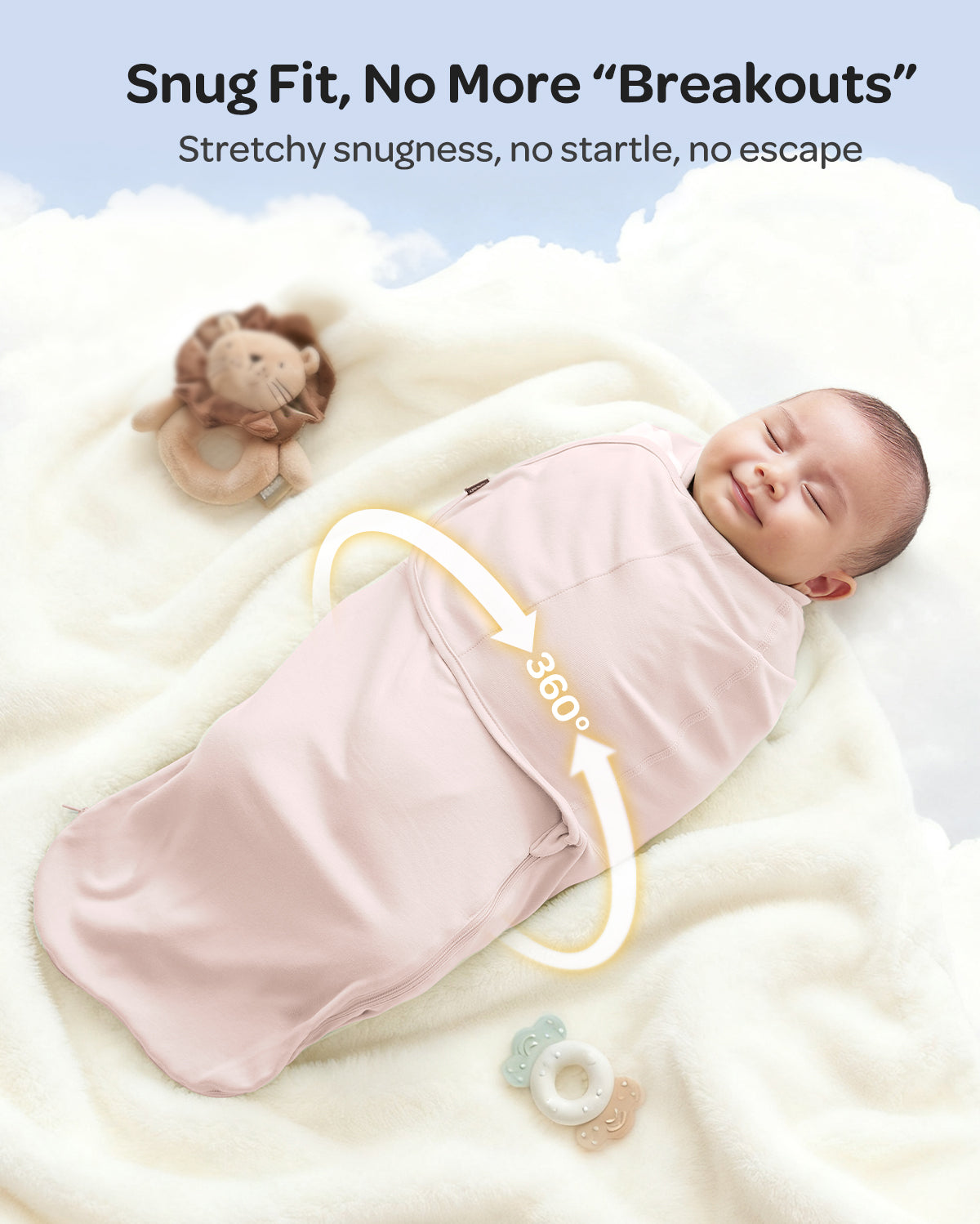Jednoczęściowa konstrukcja otulacza zapewnia kojące, przypominające łono uczucie. Elastyczna tkanina bambusowa i dopasowane otulenie delikatnie utrzymują ramiona dziecka blisko ciała, co pomaga zmniejszyć odruch Moro (odruch wystraszenia) i pozwala na spokojniejszy, bardziej regenerujący sen.