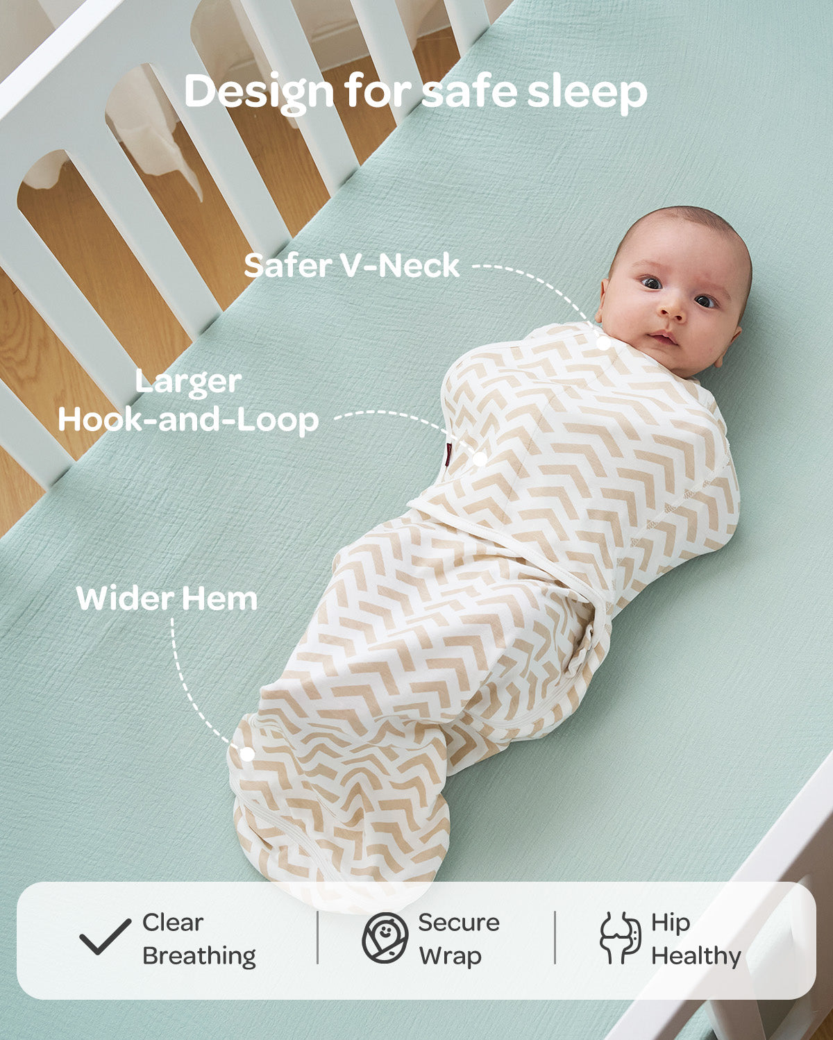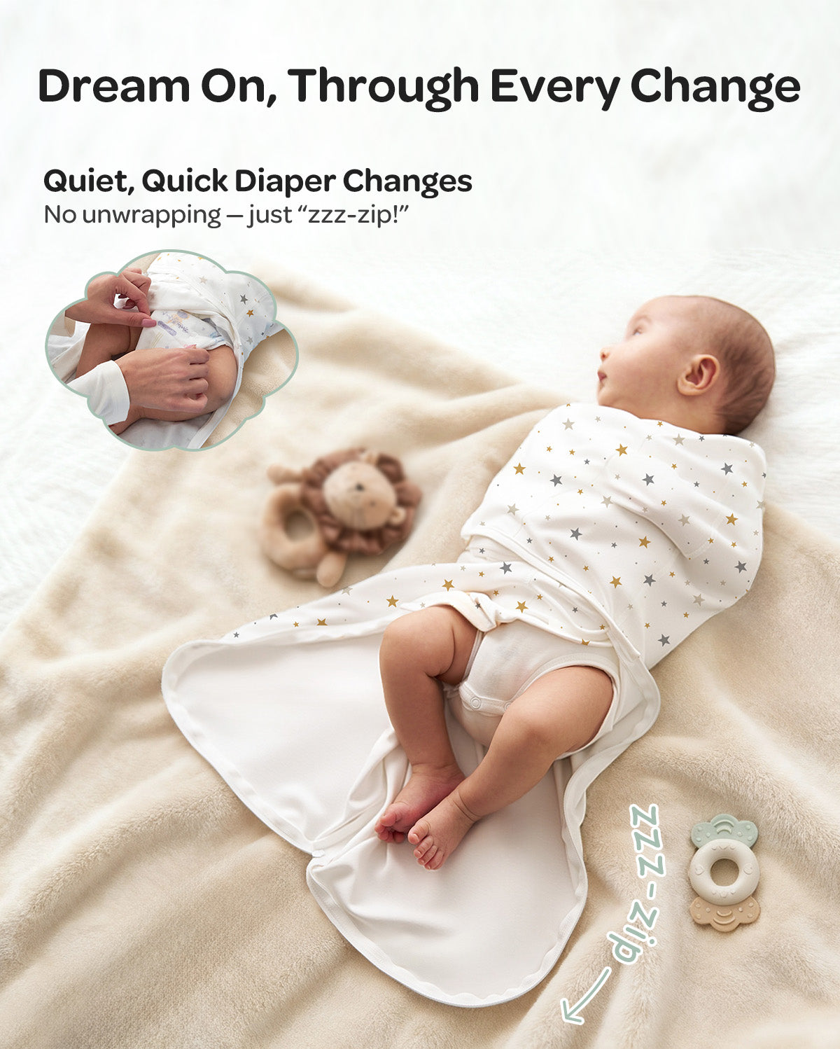 Momcozy swaddle został zaprojektowany tak, aby był znacznie łatwiejszy i bezpieczniejszy niż tradycyjne kocyki do otulania. Jego jednoczęściowa konstrukcja eliminuje kłopot związany ze skomplikowanym owijaniem, zapewniając zawsze pewne i dopasowane otulenie dzięki regulowanym panelom na rzepy. Posiada również ultracichy rzep oraz wygodny zamek u dołu, które są kluczowymi zaletami niedostępnymi w standardowym kocyku do otulania.