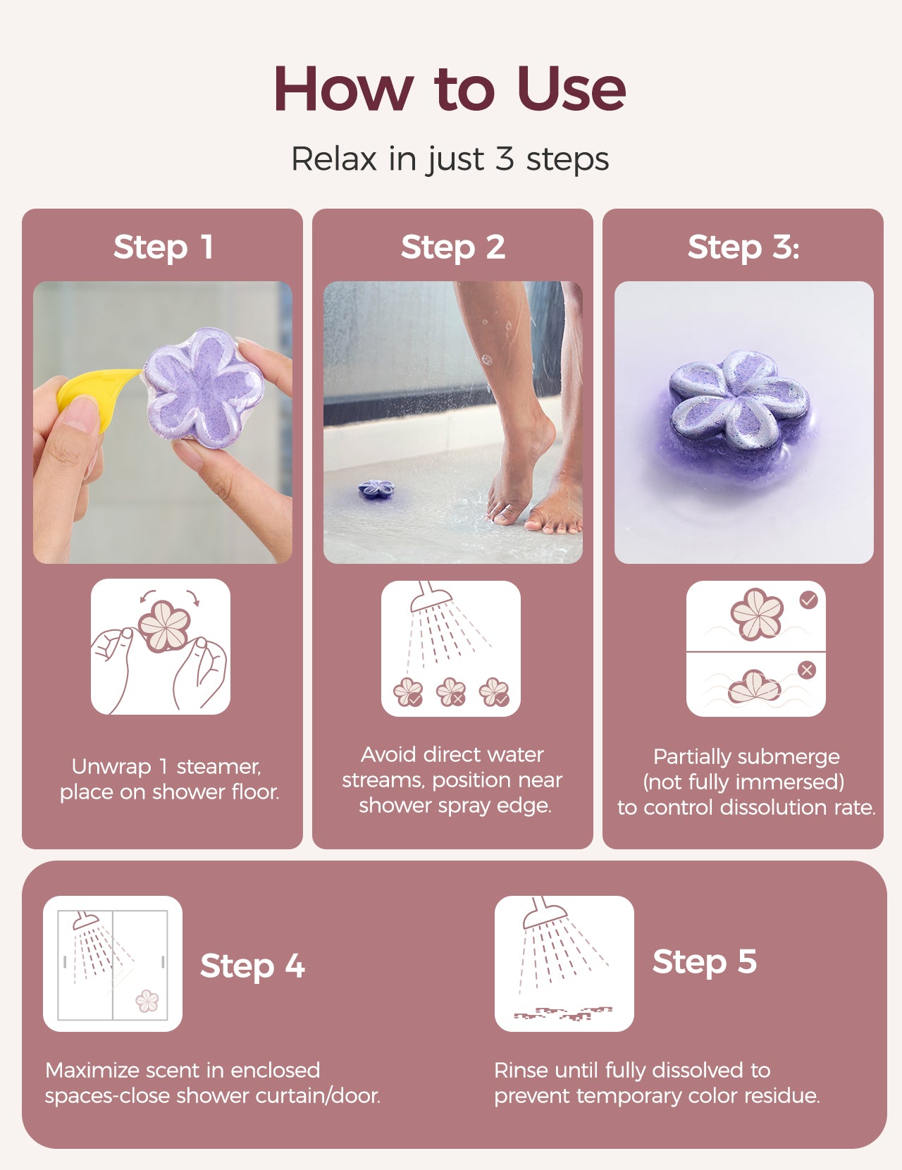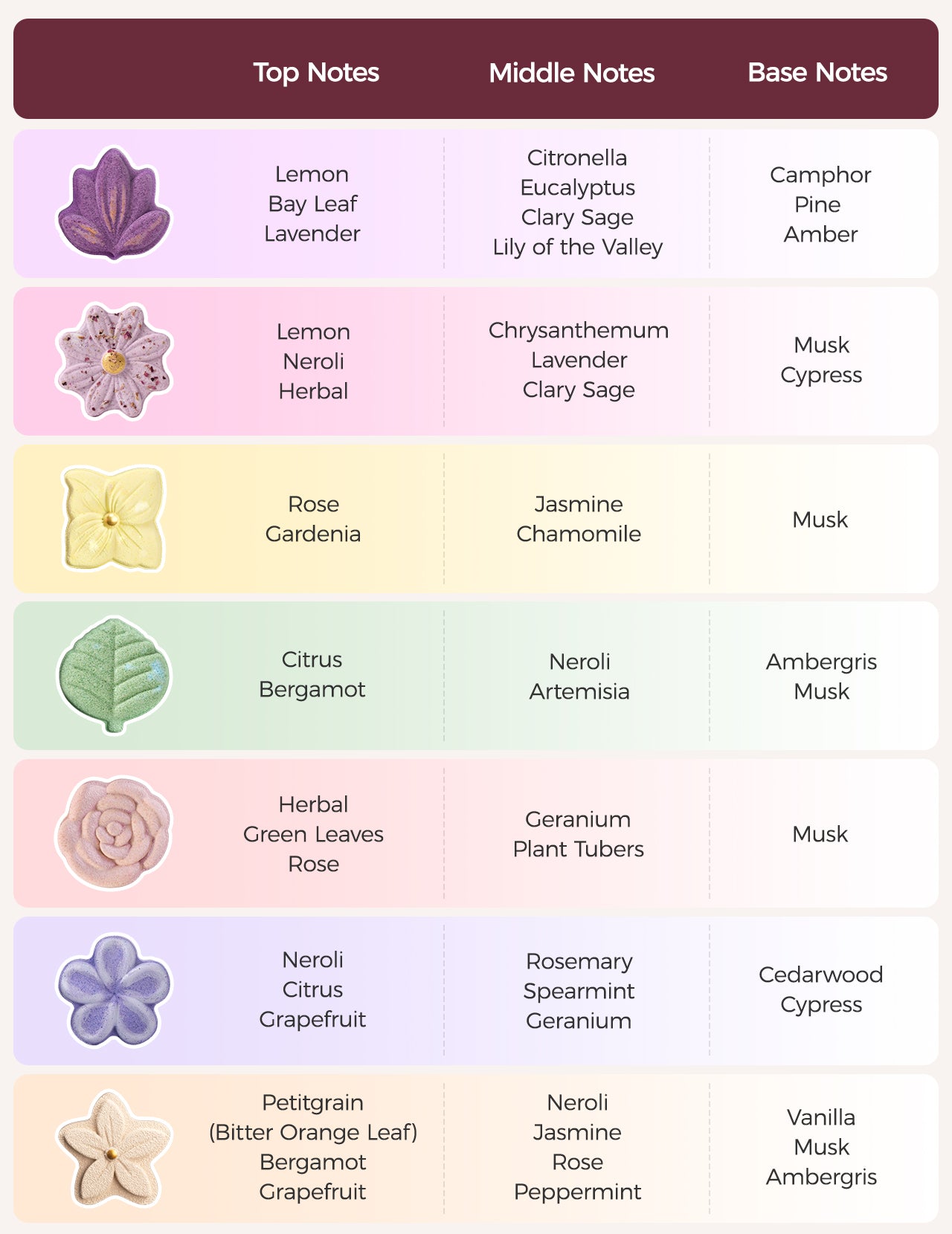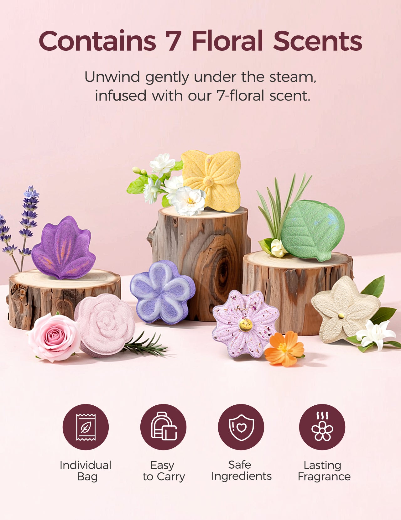 Dopasuj swój nastrój do prysznica. Nasze kwiatowe kule do aromaterapii mają 7 kształtów kwiatów, każdy z przypisanym zapachem.
